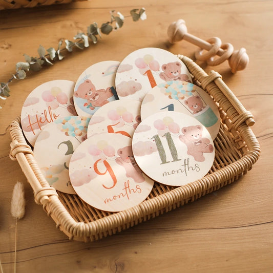 Wooden Baby Milestone Bear - Photography Prop & Keepsake Accessory