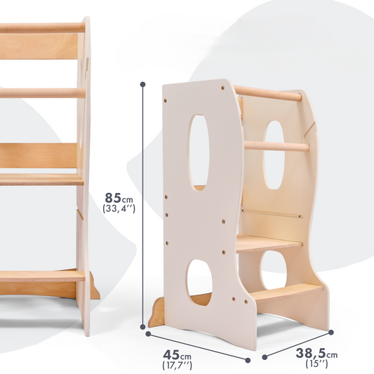 Stable Montessori Learning Ladder - Adjustable Kitchen Aid for Children Ivory