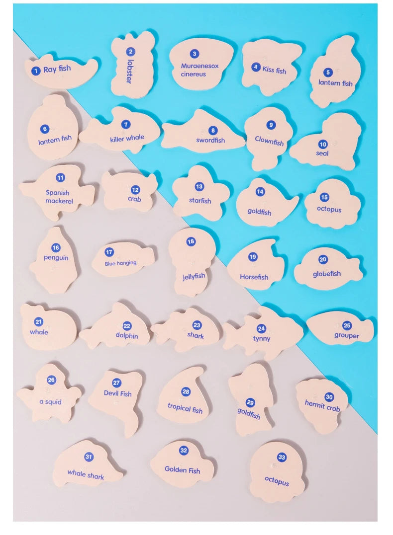 Leer Engels op een speelse manier met dit prachtige houten magnetische visspel! Dit educatieve speelgoed helpt kinderen Engelse woorden voor zeedieren te leren terwijl ze hun motoriek ontwikkelen.