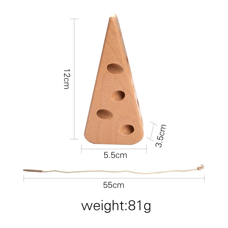 Dit prachtige houten kaas rijgspel is speciaal ontworpen volgens de Montessori-methode om de vroege ontwikkeling van uw baby te stimuleren. Perfect voor het ontwikkelen van fijne motoriek en hand-oog coördinatie.
